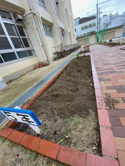暖かくなり、いよいよ学習園での栽培が始まります。それに合わせて、理科専科の先生が中心となり、学習園を耕して肥料を混ぜ込みました。どんな学習園になるでしょうか?大変楽しみです。
