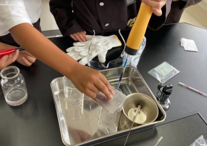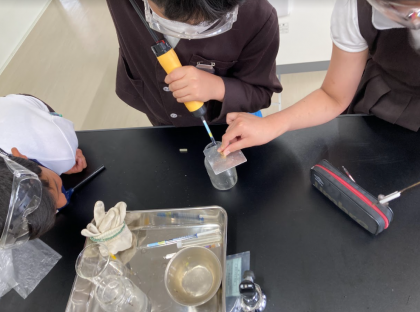 器具や薬品の使い方に気を付けながら、実験を進めました。