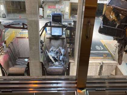 見学中も次々とゴミが運ばれて来ます。たくさんのゴミをクレーンでつかんでいます。「すっげぇー!」