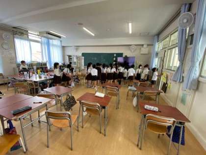 お客様役の児童を教室で迎えて、リハーサルを行いました。