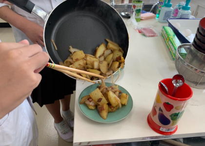 初めての調理実習にも関わらず、手際良く、協力して調理することができていました。