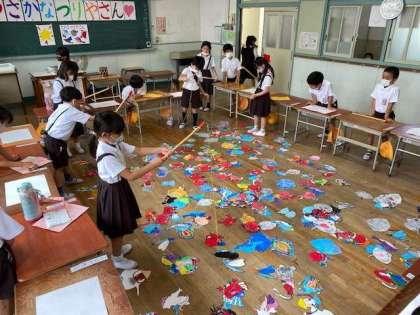 1年1組は、「さかなつりやさん」です。