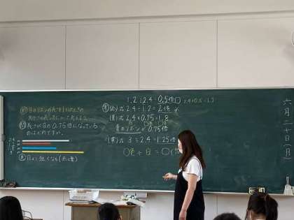 割合の勉強です。基準となる紐(白色)に対して、他の紐が何倍になっているかを求める問題です。