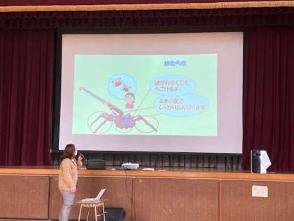 今日の2.3時間目と5.6時間目に、大阪国道事務所と大阪市消防局から講師の方をお招きして、大きな地震対策についてお話ししていただきました。