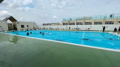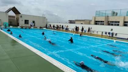 今日は、曇り空となり過ごしやすくなっています。水を豪快にかいて進む子、ゆっくり優雅に進む子、様々な泳ぎ方です。特徴が出ますねー。声をかけると、「ちょっと水がぬるいかなぁ」と、少々不満顔でした(T . T)
