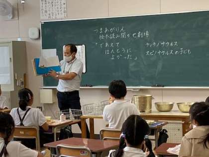 今日は、4年2組で津曲先生の「読み聞かせ」が給食時間にありました。