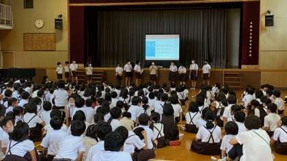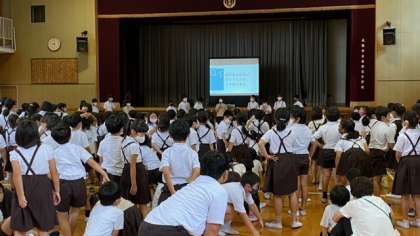 次に保健美化委員会より、健康に関する「まるばつクイズ」を行いました。