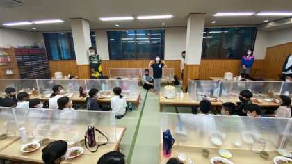 食事係が、考えたクイズを解いてから、正解して気持ちよく「いただきます!」