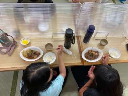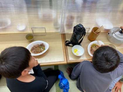 ご飯が進みますねー。お昼のカレーライスをお腹いっぱい食べたのに、よく食べれるねー。さすが食べ盛り!
