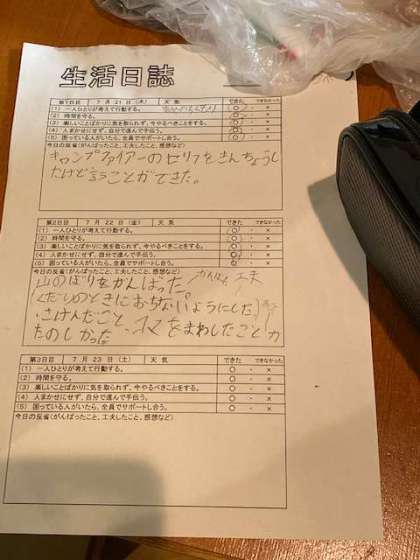 今日も1日、終わりを迎えました。林間学習もあと1日となりました。早いですね。