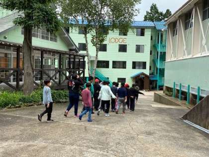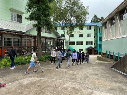 宿舎前での記念撮影を行いました。日がさしてきました。