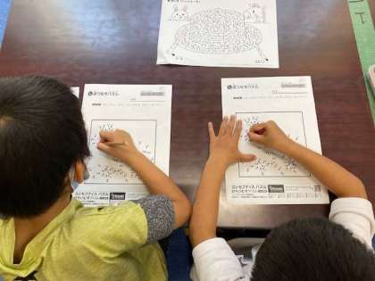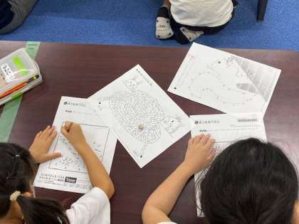 いきいき活動では、「チャレンジタイム」で、パズルやお絵かき、迷路に取り組んでいました。「かんたん!」と言いながら、次々と仕上げていきます。