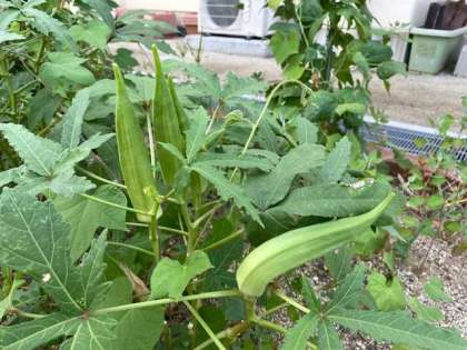 オクラは、20cmほどの大きさになっていて、食べるには育ち過ぎてしまった感があります。