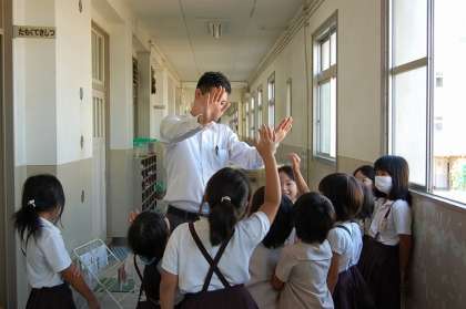 C−NETの先生は、休み時間も子どもたちに関わってくれていました。これを機に、英語への意欲・関心が高まればと思います。