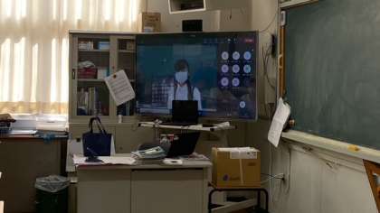 朝の児童朝会は、teamsで行っています。集会係が、準備したクイズに答えます。