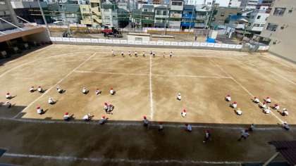 表現運動では、個々が独特のあるポーズを正面で決めていきます。ちょっとだけ照れくさい子もいるのかな?でも、頑張って活動しています。