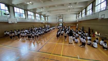 大阪モデル、イエローステージになりましたので、久しぶりに講堂で朝会を行いました。