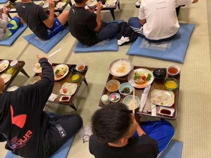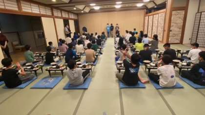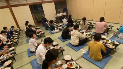 食事係があいさつとクイズを出して、さあ、いただきます(^-^)