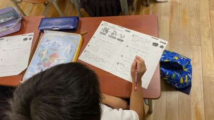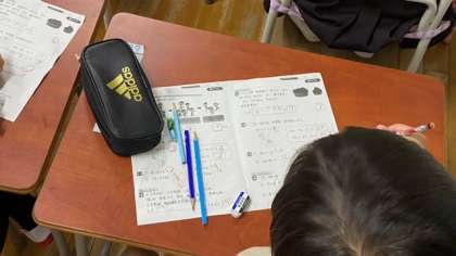 1年生の算数で、足し算と引き算の混ざった計算の学習をしています。