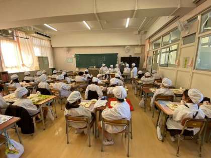 今日の給食は、鶏肉の柚子塩焼き、ソーキ汁、ツナ大豆そぼろです。