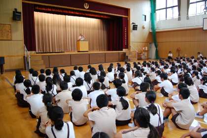 終業式では、夏休みを迎えるにあたって気を付けてほしいことなどのいろいろな話をしました。
