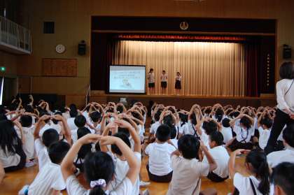 その後の学校保健委員会では、児童がクイズ形式で夏休みの生活について、わかりやすく提案しました。
