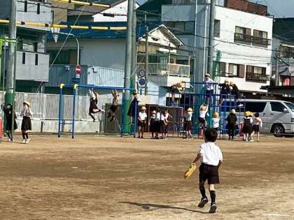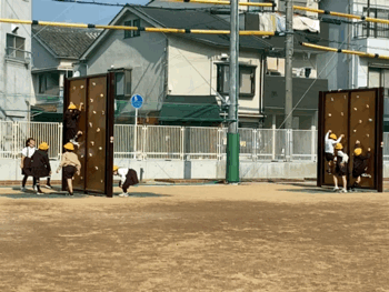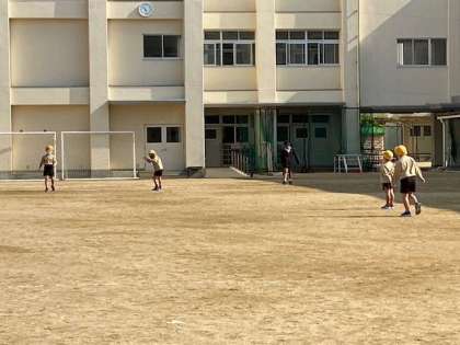休み時間、たくさんの子どもたちが、広くなった運動場で遊んでいます。