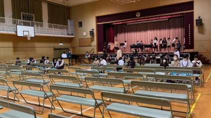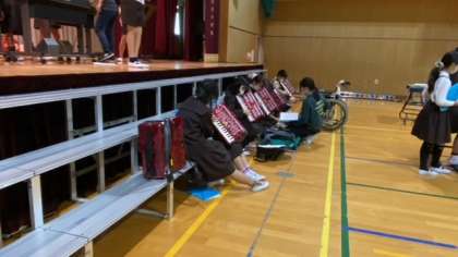 今日の1.2時間目、講堂では4年生が、合奏の練習を行っていました。