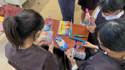縄跳びをしている委員会、お手製の花瓶作り、学校の放送について話し合っています。