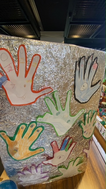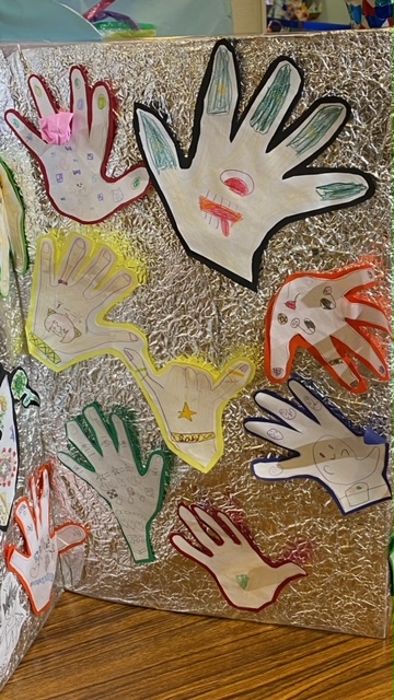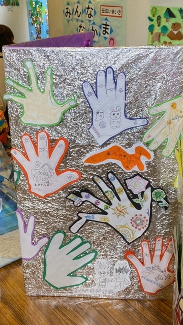 裏は手のひらに模様が描かれている作品がたくさん貼ってありました。