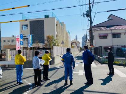 子どもたちの安全な登下校のために、春日出小学校と、此花区役所、此花警察署、建設局、港湾局が合同で、通学路の合同点検を行いました。今回確認された改善箇所については、今後、各部署で改善へ向けて動いていく予定です。