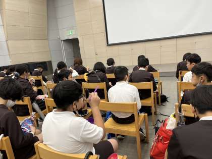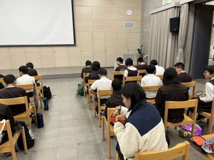 午前の見学が終わり、楽しみにしていたお弁当ターイム!雨天のため、室内で昼食をとります。