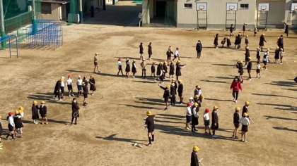 15分の休み時間を利用して、縦割り班で跳んでいきます。