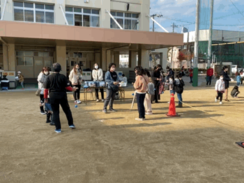 けん玉コーナーでは、大小さまざまなけん玉で遊びます。リズムよくコンコンコンと、皿に乗せる事ができる子がいました。