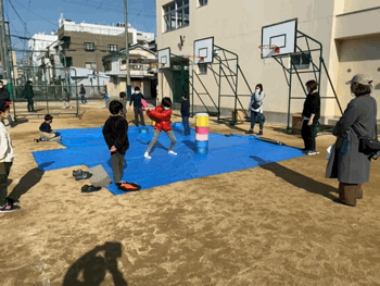 だるま落としコーナーでは、「ソフトタイプ」でバットを使って、抜いていきます。これがまた難しい。だるまが軽いので、すぐ落ちちゃうんです。
