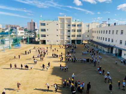 15分休みに全児童が運動場へ出て、体力向上のために大なわとびをしました。異学年でグループを組み、交流しながら取り組みました。