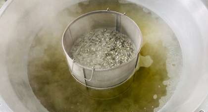 たくさんの煮干しから出汁をとり、みそ汁を作っています。