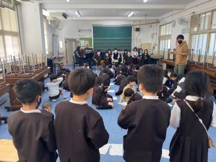 12月16日(金)3時間目の音楽の学習で、1年生の子どもたちが「あわてんぼうのサンタクロース」や「赤鼻のトナカイ」などの曲を歌いました。また、リズムに合わせていろいろな楽器を奏でました。