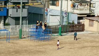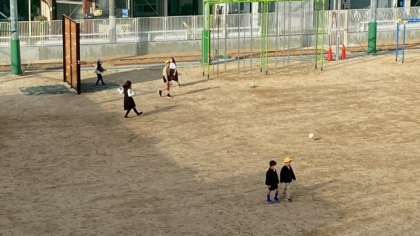 ジャングルジム登り、サッカー、フリスビー投げ、、。よく学び、よく遊んでいます。
