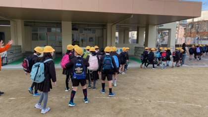 今日は、3年生が社会見学で「くらしの今昔館」に行きます。
