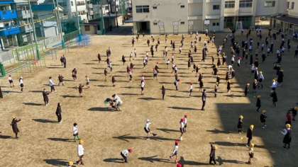 休み時間には、縦割り班で縄跳び!