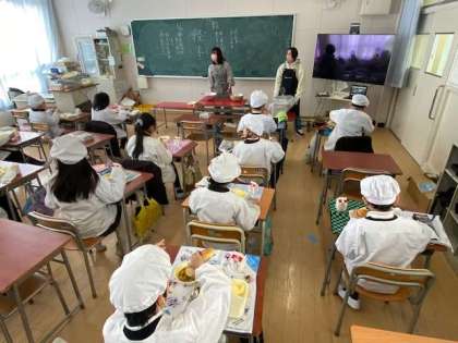カレー煮には、玉ねぎ、人参以外に、大根、しめじ、枝豆を調理しています。野菜は風邪をひきにくくする体を作る栄養が多く含まれていると言われています。寒い日が続きます。栄養バランスが良い給食をしっかりと食べてくださいね。