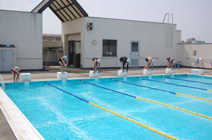 連日猛暑日が続いておりますが、水泳記録会にエントリーしているみんなも、連日練習をがんばっています。暑さに負けず、自分と闘い続ける日々です。毎日の記録更新が目当てです。