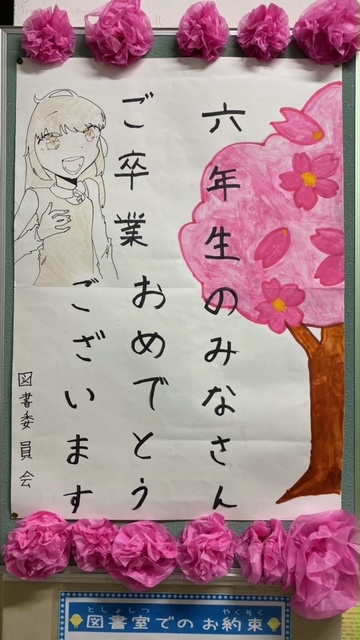 図書室の前の掲示板には、図書委員会の皆さんが作成したポスターが掲示されていました。
