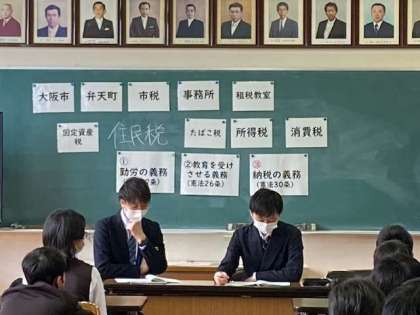 今日の2時間目に、財政局の方に来ていただき、租税教室の出前授業を行いました。