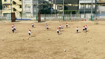 一斉に蹴ったよ。真っ直ぐ飛んだかな?