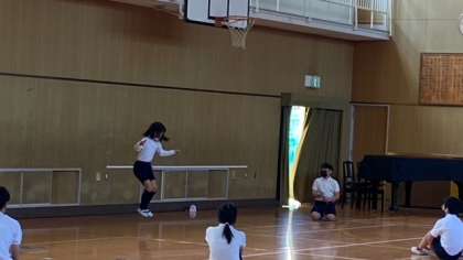 2重跳びに挑みます。しかも、後ろ跳び!10回以上跳んでいる児童もいました。