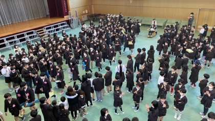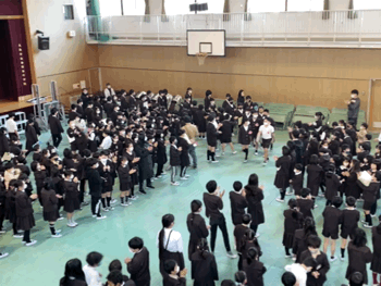 6年生が、在校生の間を拍手の中を退場していきます。あと3週間弱で卒業式です。それまで、まだまだよろしくお願いしますね、6年生!