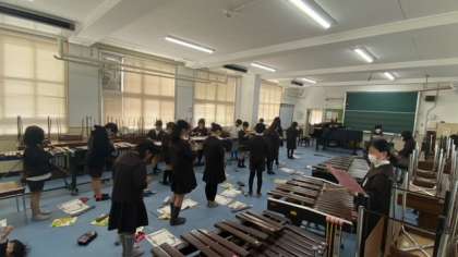 音楽の授業中。まずは合奏。楽器を上手に使えています。