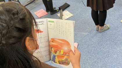 後半は、歌唱です。大きな声で歌えてました。授業後に、「今日、鉄琴を弾いたよ。難しいかったなぁ。」もっと練習したら、上手になれるよ^_^